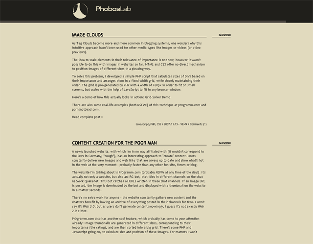 Doing logo design isn’t easy. Making a logo for PhobosLab felt particularly hard, because the name, despite of the very real Mars moon Phobos, is quite abstract for a weblog. Well, I settled for the real thing and actually used Phobos as a logo, as you can now see in the page header. No, it’s not the Deathstar – Phobos has a huge crater on its side, in case you’re wondering.