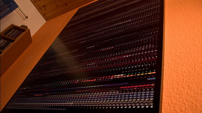 I tried this technique with a lot of different movies, but the one that looked most interesting turned out to be Stanley Kubricks 2001: A Space Odyssey. Now I’ve finally got it printed, glued onto a frame and hanging on my wall. I’m very pleased how the print turned out. Every single image is only 11mm wide, but you can still make out a lot of details.