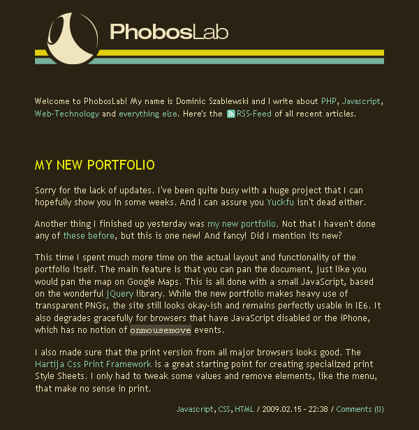 The nice thing of having a minimalist layout is that you can change the complete look of your site with relatively little effort. Still, this redesign took a while. I spent most of the time to come up with something I liked and then some more to throw it away and start over again.